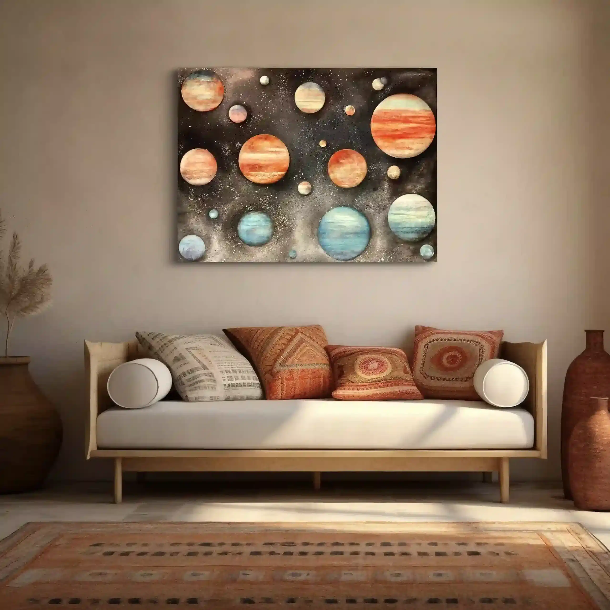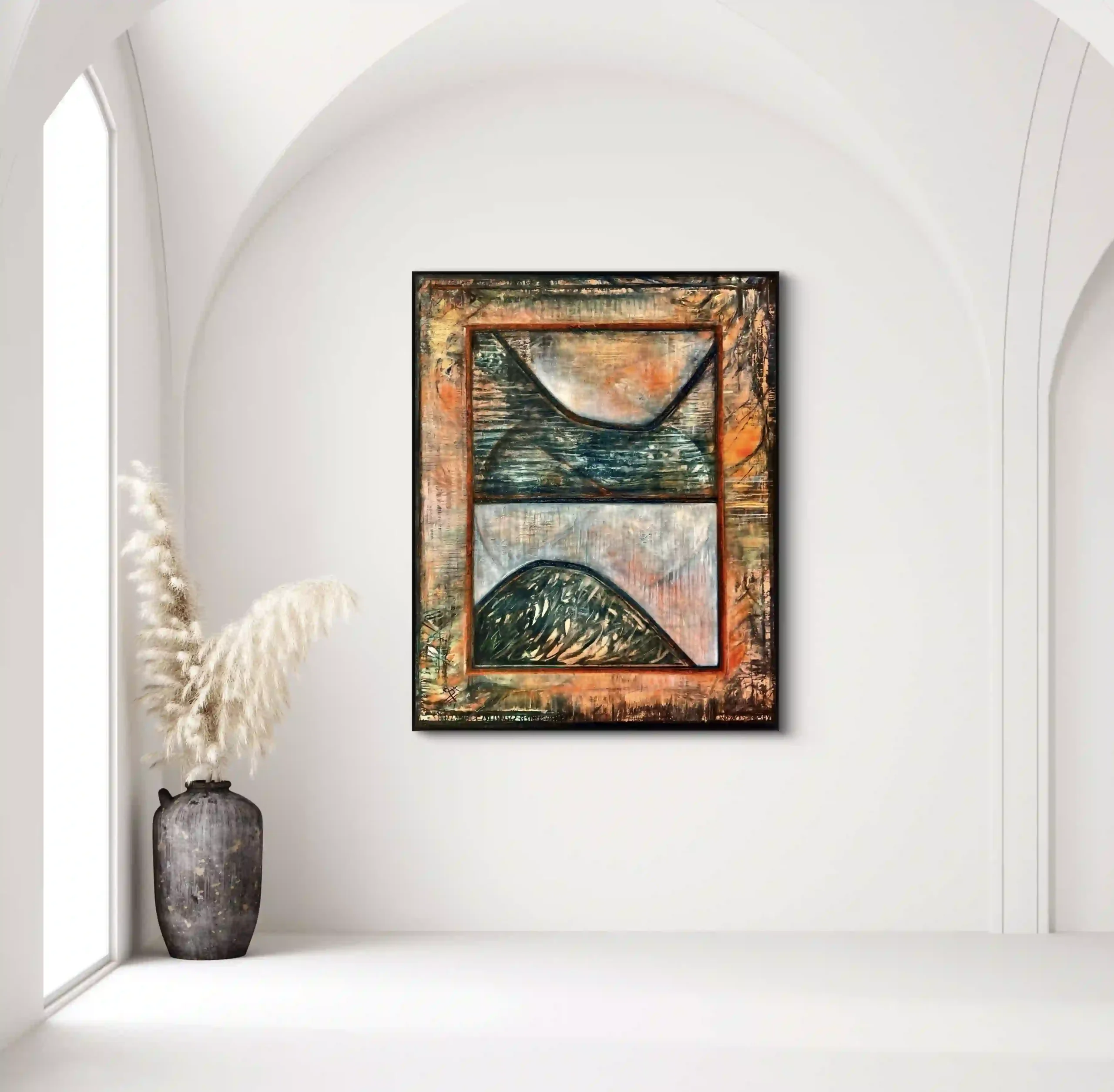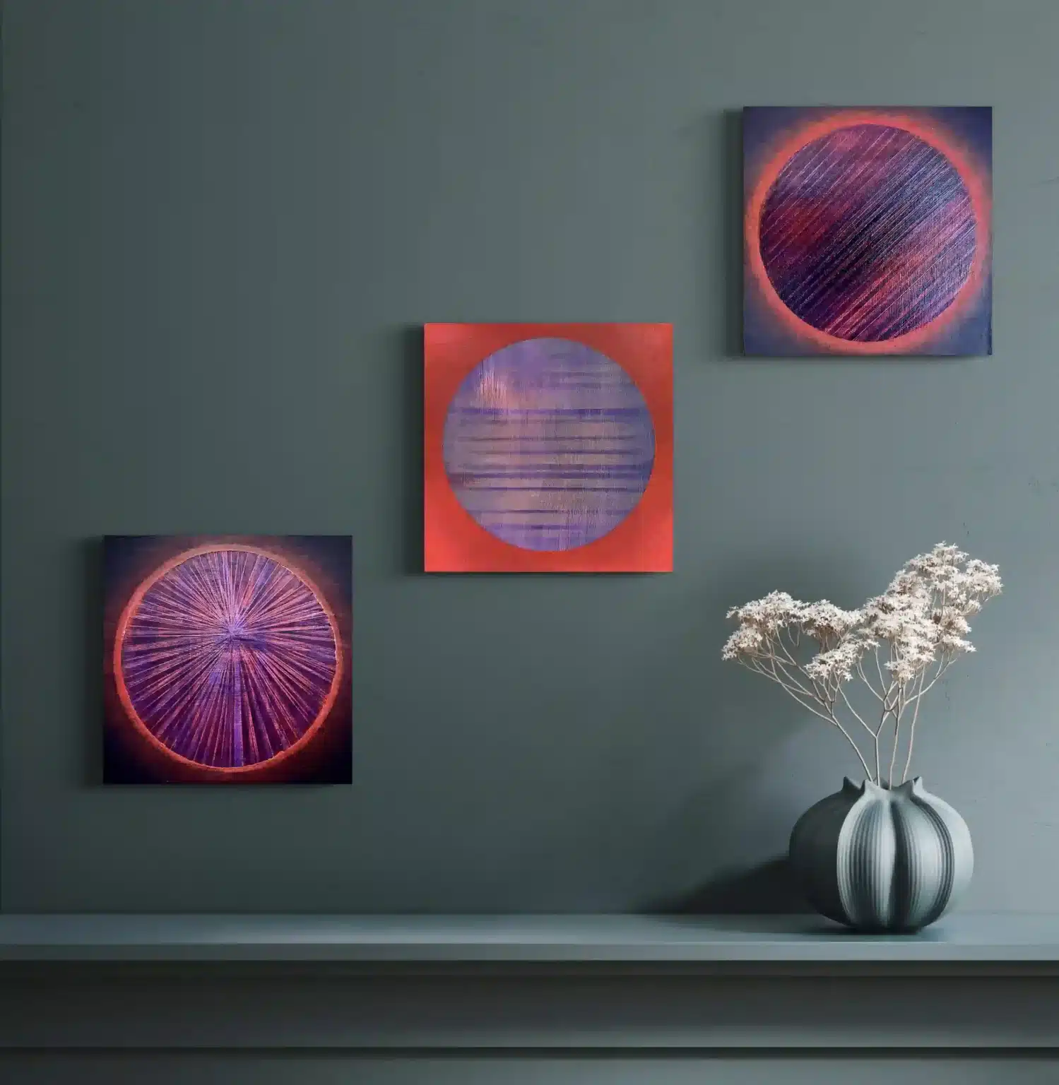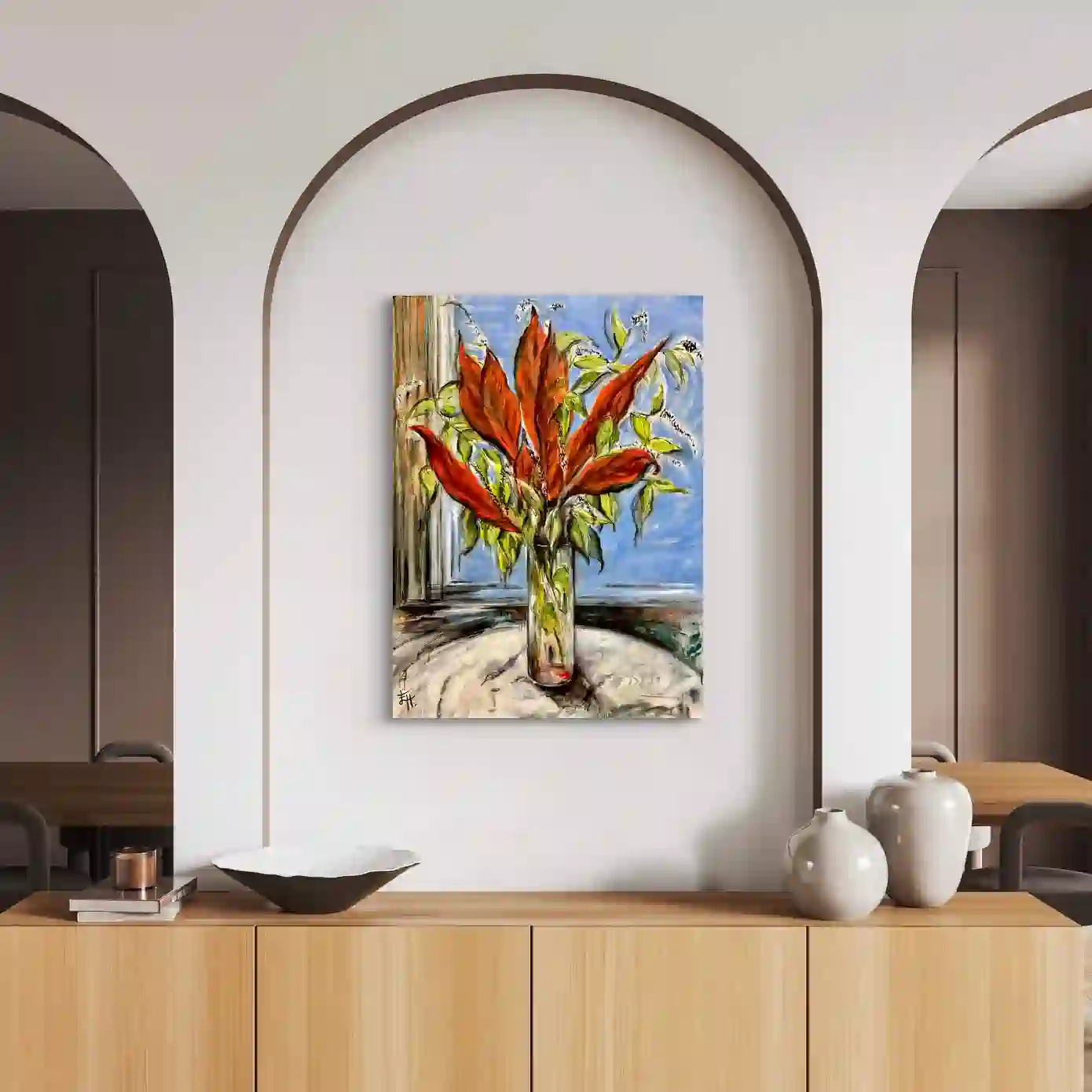 Art in Situ Gallery 'Melbourne Through the Mist' (Triptych), Size: 270cm x 150cm, Medium: Oil paint on linen 'Scarlet Reflection', Size: 163cm x 102cm, Medium: Oil paint on canvas 'Feeling Free', Size: 122cm x 92cm, Medium: Oil on Canvas 'Feeling Free Again', Size: 122cm x 91cm, Medium: Oil paint on canvas 'A Bayside Icon' (Brighton Library), Size: 122cm x 152cm, Medium: Oil paint on linen 'Balancing Act' (V1), Size: 122cm x 152cm, Medium: Oil paint on linen 'Balancing Act' (V2-Horizontal), Size: 152cm x 122cm, Medium: Oil paint on linen 'A celebration of Abstraction', Size: 110cm x 125cm, Medium: Oil Paint on canva 'Just Resting', Size: 187cm x 175cm, Medium: Oil Paint on Canvas 'From the Garden', Size: 76cm x 115cm, Medium: Oil paint on canvas 'Still Life With Two Vessels', Size: 42cm x 52cm (Framed), Medium: Oil paint on acrylic 'A New Direction', Size: 101.5cm x 91.5cm, Medium: Acrylic on Canvas 'An Alternate Universe', Size: 122cm x 92cm, Medium: Oil paint on Canvas 'Iridescence', Size: 32.5cm x 32.5cm (Framed), Medium: Mixed Media on Canvas 'Eclipse 1, 2 & 3' (Set), Size: 18cm x 18cm each, Medium: Oil paint on canvas 'Scarlet Spiral', Size: 21cm x 21cm, Medium: Acrylic on Canvas 'Superimposed', Size: 32.5cm x 32.5cm, Medium: Acrylic paint on Canvas (Framed) 'Orange Triangle', Size: 32.5cm x 32.5cm, Medium: Acrylic paint on canvas 'Alchemy', Size: 21cm x 21cm, Medium: Oil paint, texture medium and metallic foil 'Shimmer', Size: 21cm x 21cm, Medium: Acrylic paint with gold Foil 'Under the Deep Blue Sea', Size: 21cm x 21cm, Medium: Mixed 'Masque', Size: 52cm x 42cm, Medium: Oil Paint on Canvas 'Metung After the Rain' (1 & 2), Size: 20cm x 25cm each (Framed), Medium: Oil paint on canvas-board 'Window on the Peninsula', Medium: Oil Paint on Canvas, Size: 175cm x 153cm, *(SOLD)