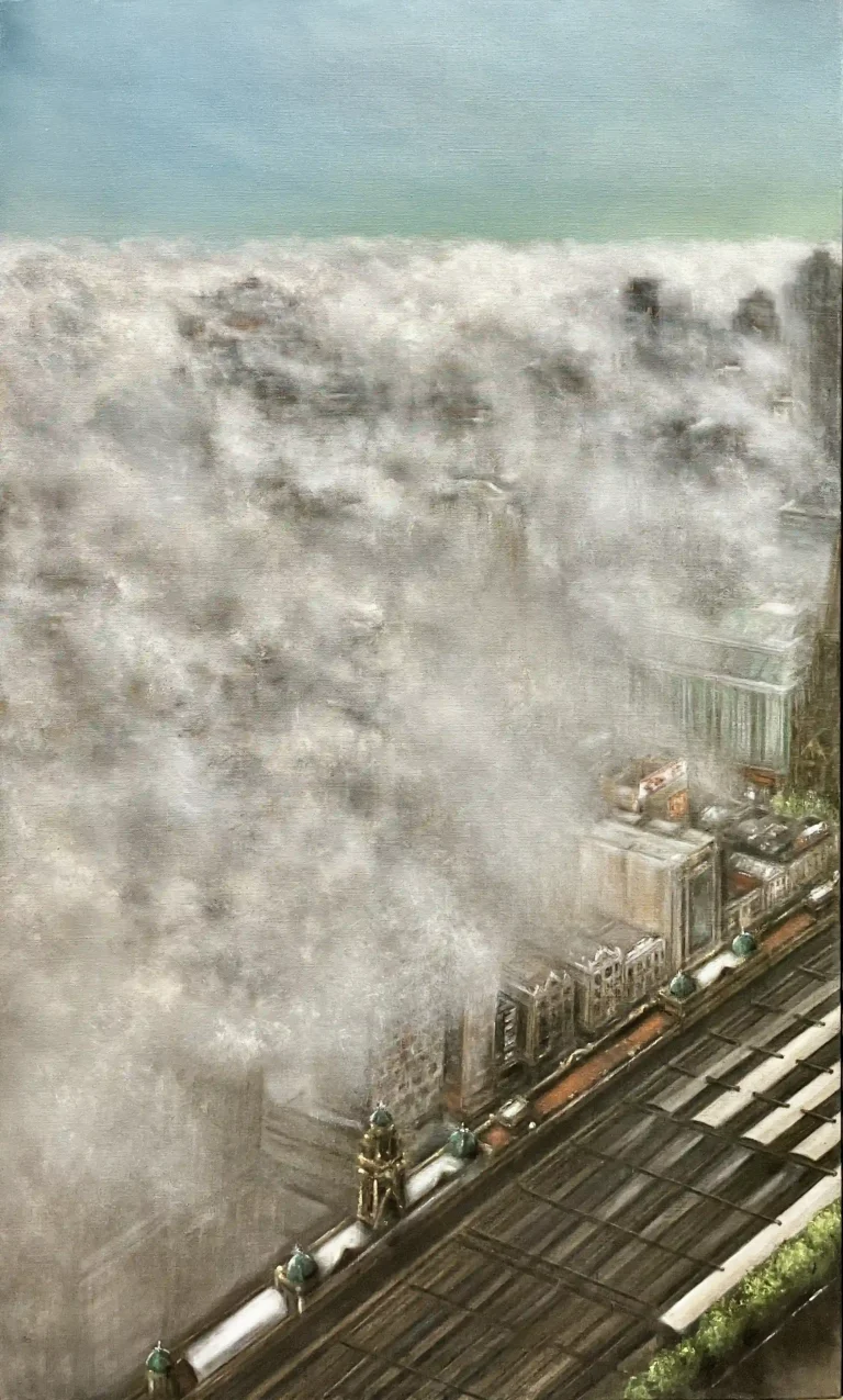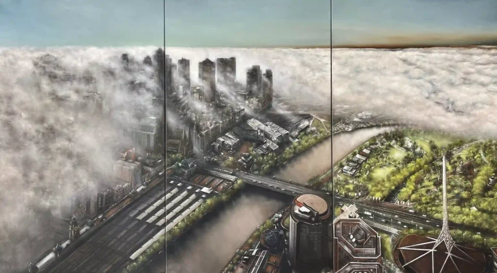 'Melbourne Throug'h the Mist' (Triptych), Size: 270cm x 150cm, Medium: Oil paint on linen
