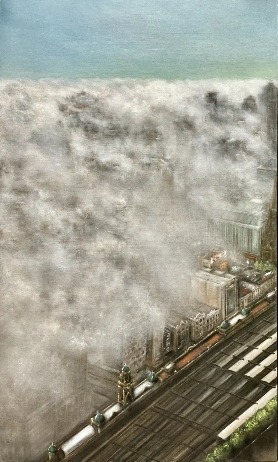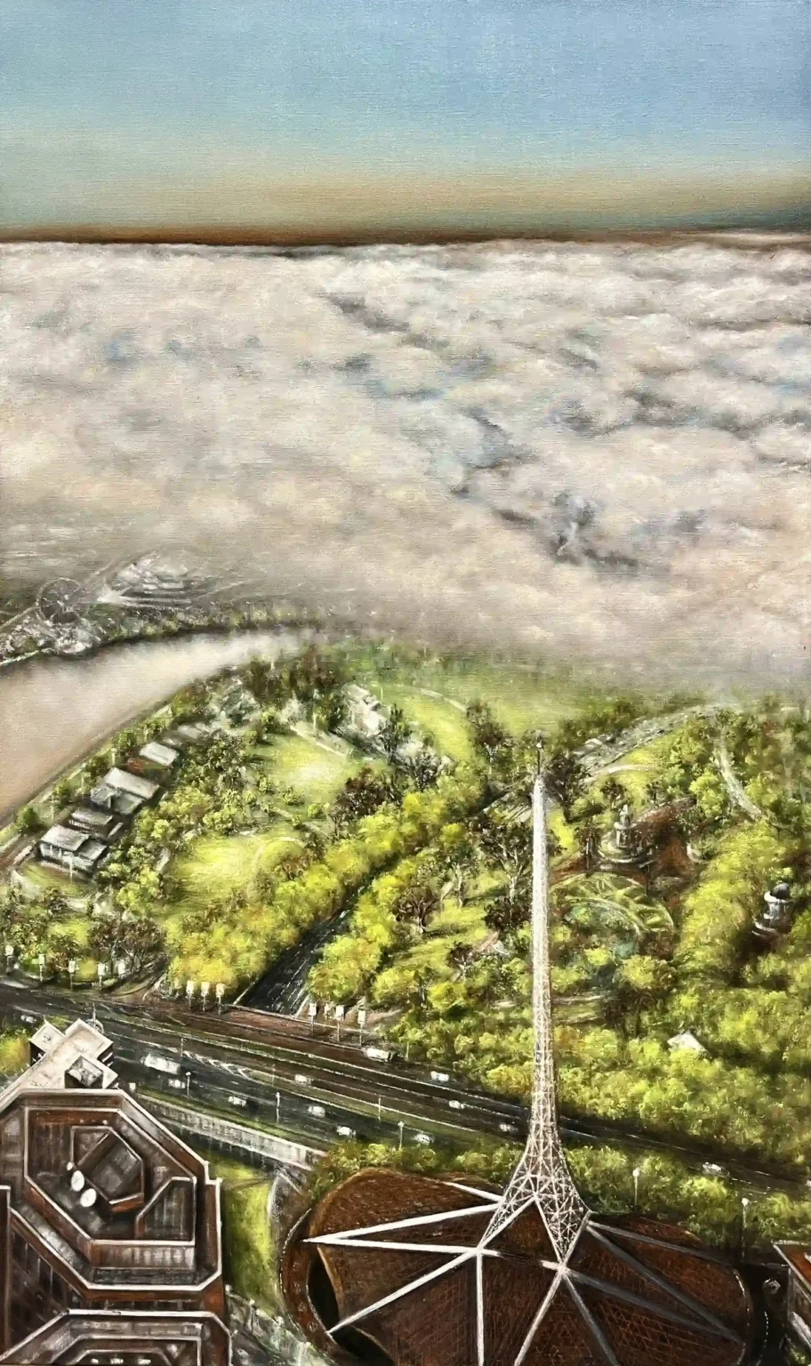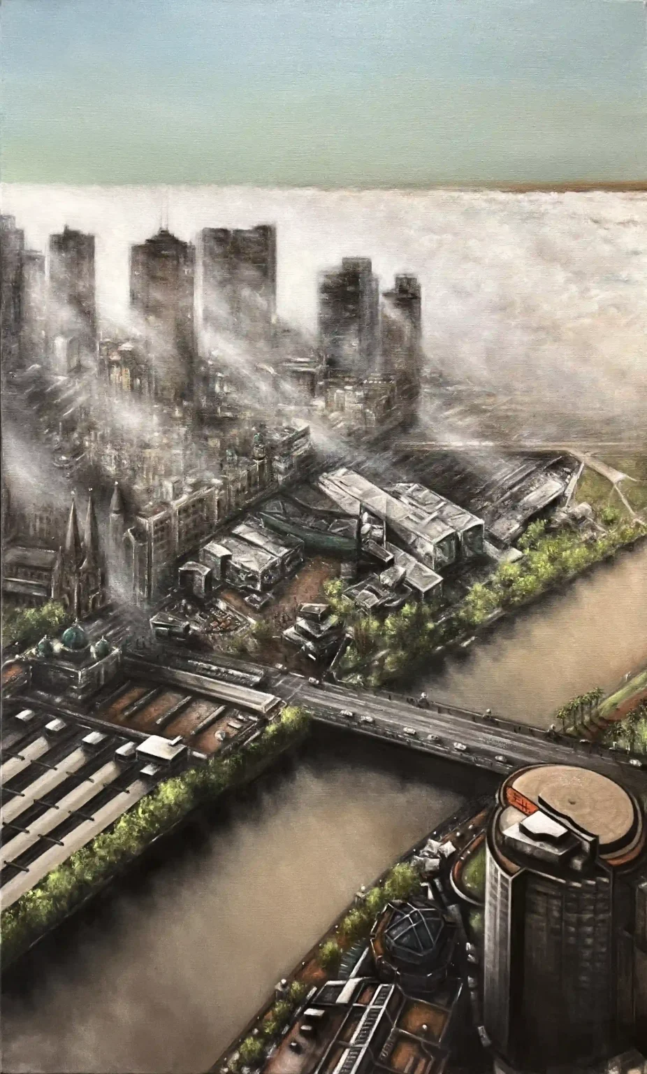 Urban Gallery 'Melbourne Through the Mist' (Triptych), Size: 270cm x 150cm, Medium: Oil paint on linen 'Melbourne Through the Mist' (Triptych - Panel 1) Size: 90cm x 150cm, Medium: Oil paint on linen 'Melbourne Through the Mist' (Triptych - Panel 2), Size: 90cm x 150cm, Medium: Oil on Linen 'Melbourne Through the Mist' (Triptych - Panel 3), Size: 90cm x 150cm, Medium: Oil paint on linen 'A Bayside Icon' (Brighton Library), Size: 122cm x 152cm, Medium: Oil on linen 'Tranquil Afternoon at St. Kilda Marina', Size: 122cm x 152cm, Medium: Oil on linen *(SOLD) 'Change on the Horizon', Size: 122cm x 152cm, Medium: Oil on linen *(SOLD) 'Melbourne Beyond the Nylex Sign', Size: 152cm x 122cm, Medium: Oil paint on canvas *(SOLD) 'New Dawn', Size: 122cm x 152cm, Medium: Oil paint on canvas *(SOLD) 'Backyard Conversation', Size: 157cm x 183cm, Medium: Oil paint on canvas *(SOLD)