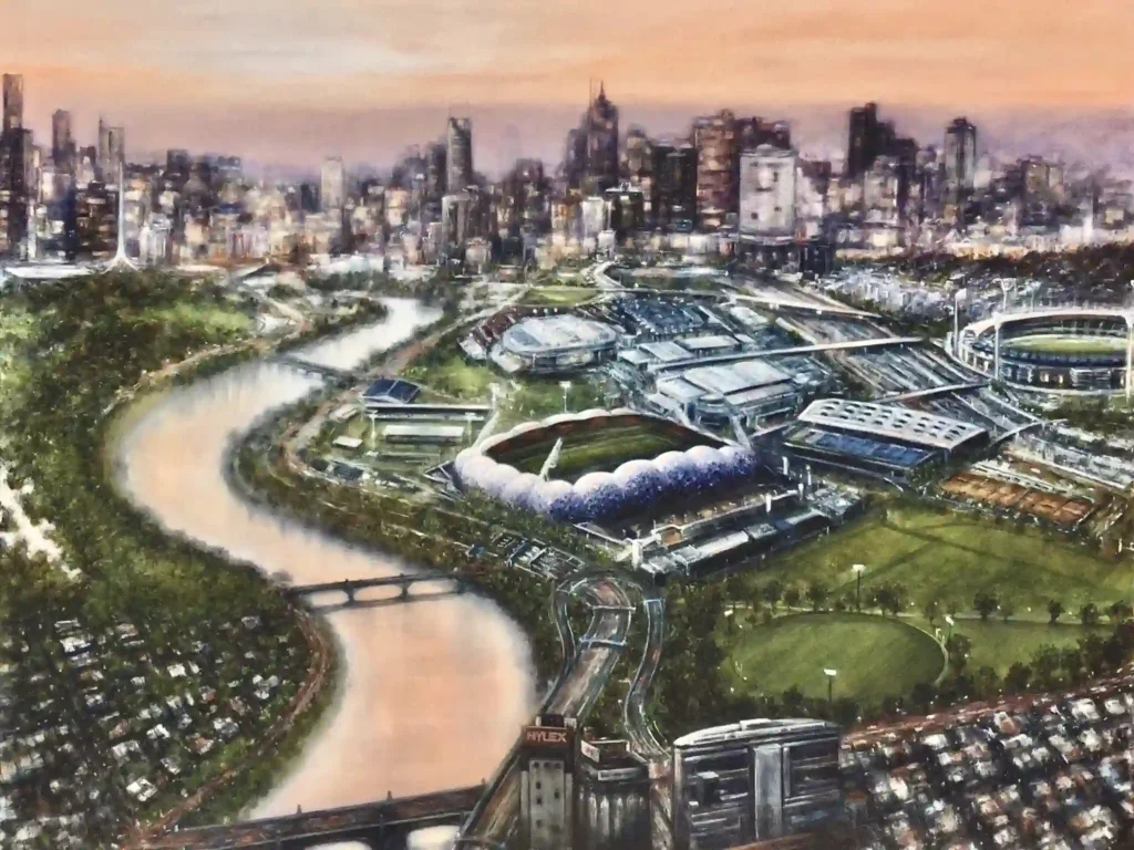'Melbourne Beyond the Nylex Sign', Size: 152cm x 122cm, Medium: Oil paint on canvas (SOLD)